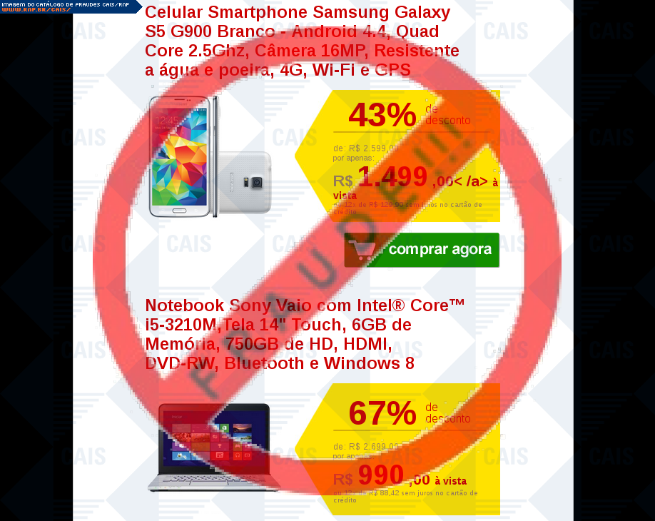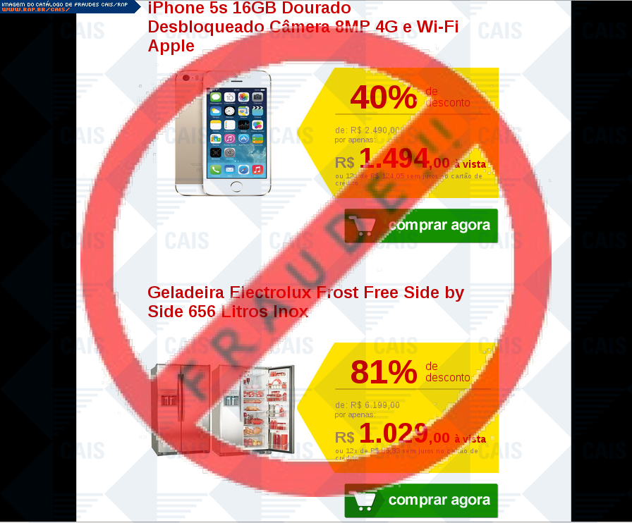 | comentário | Uma página de vendas oferece um produto em oferta disponível para compra, no entanto a página é falsa criada para roubar os dados pessoais e do cartão de crédito da vítima. | |