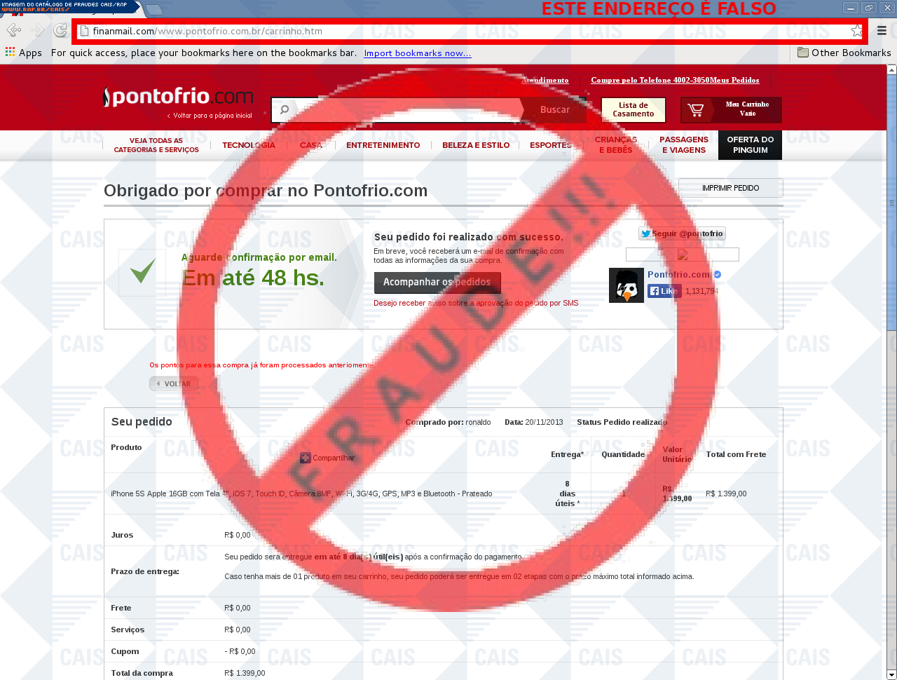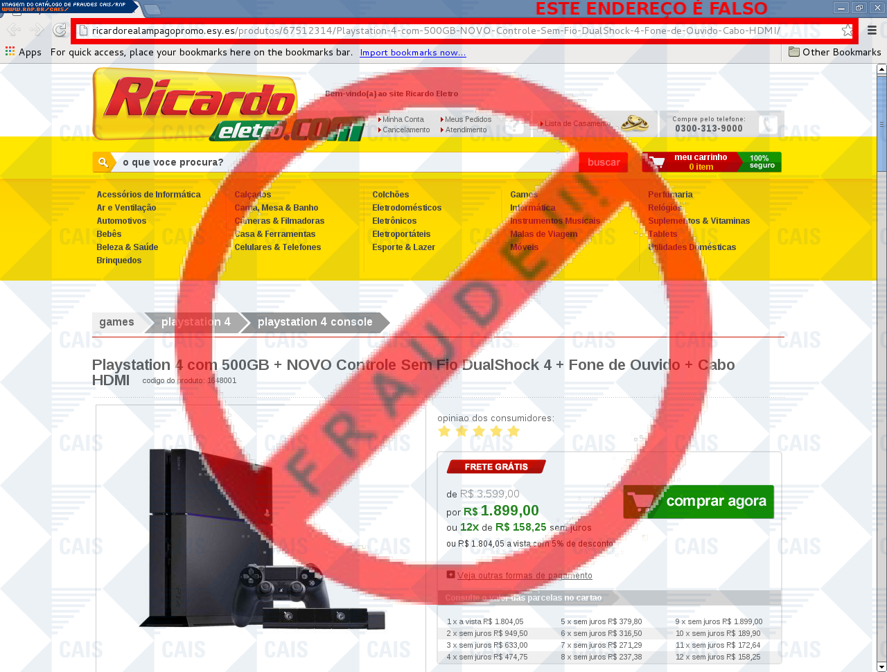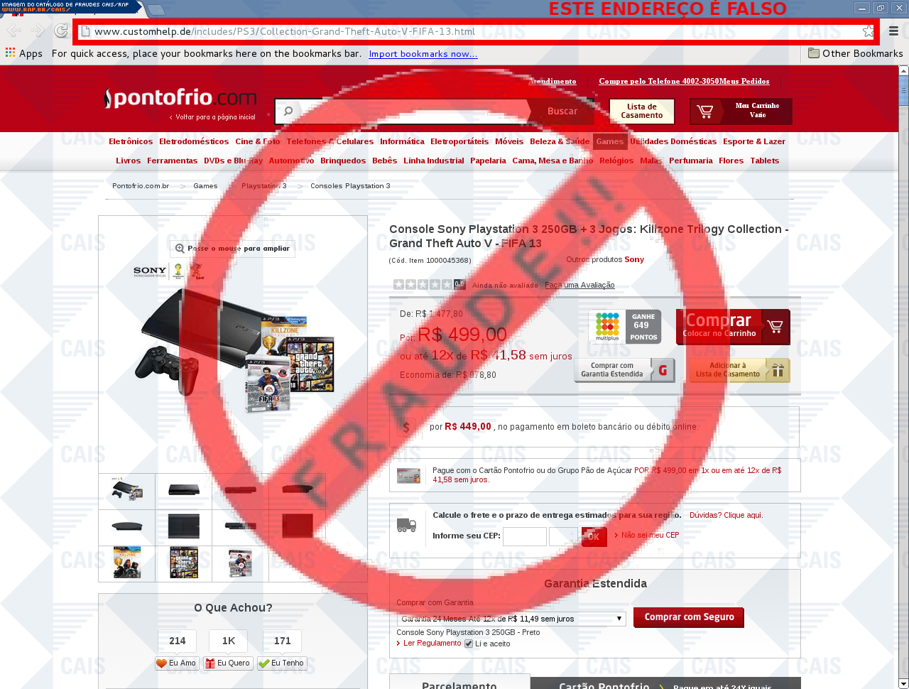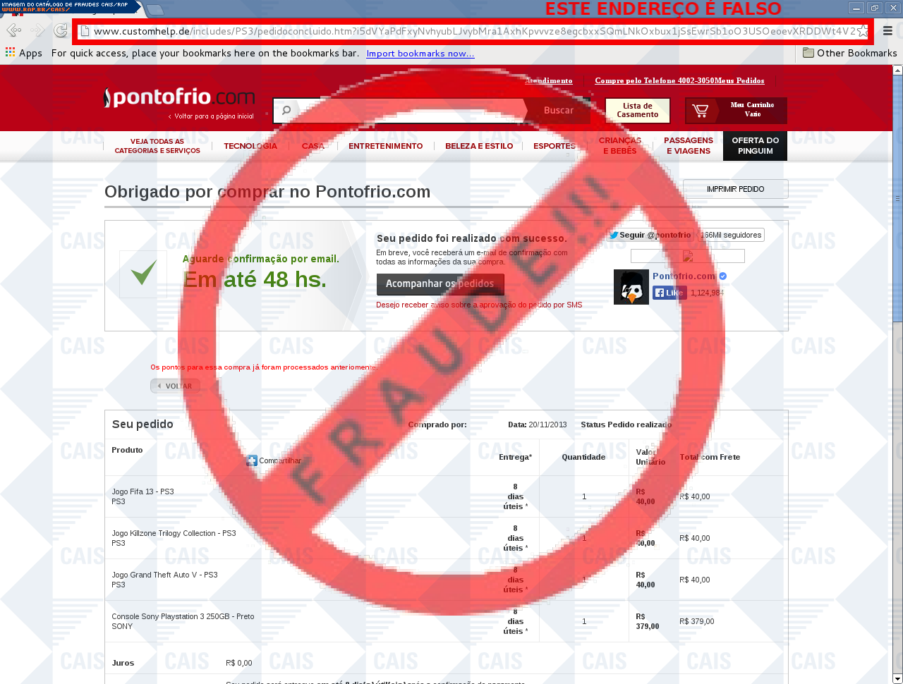 | assunto | Página falsa, phishing do PontoFrio vende playstation | |