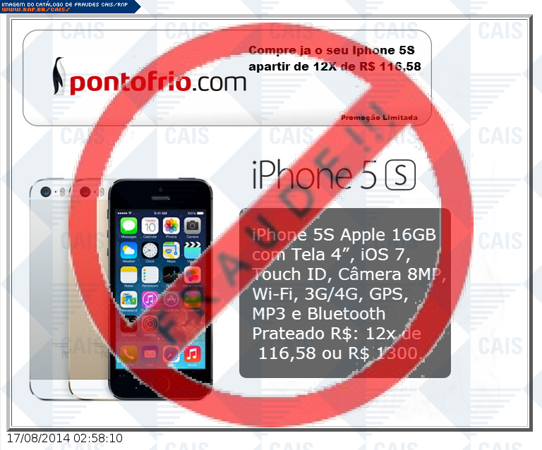 | tipo | FRAUDE - Ponto Frio | ID: 32106 |