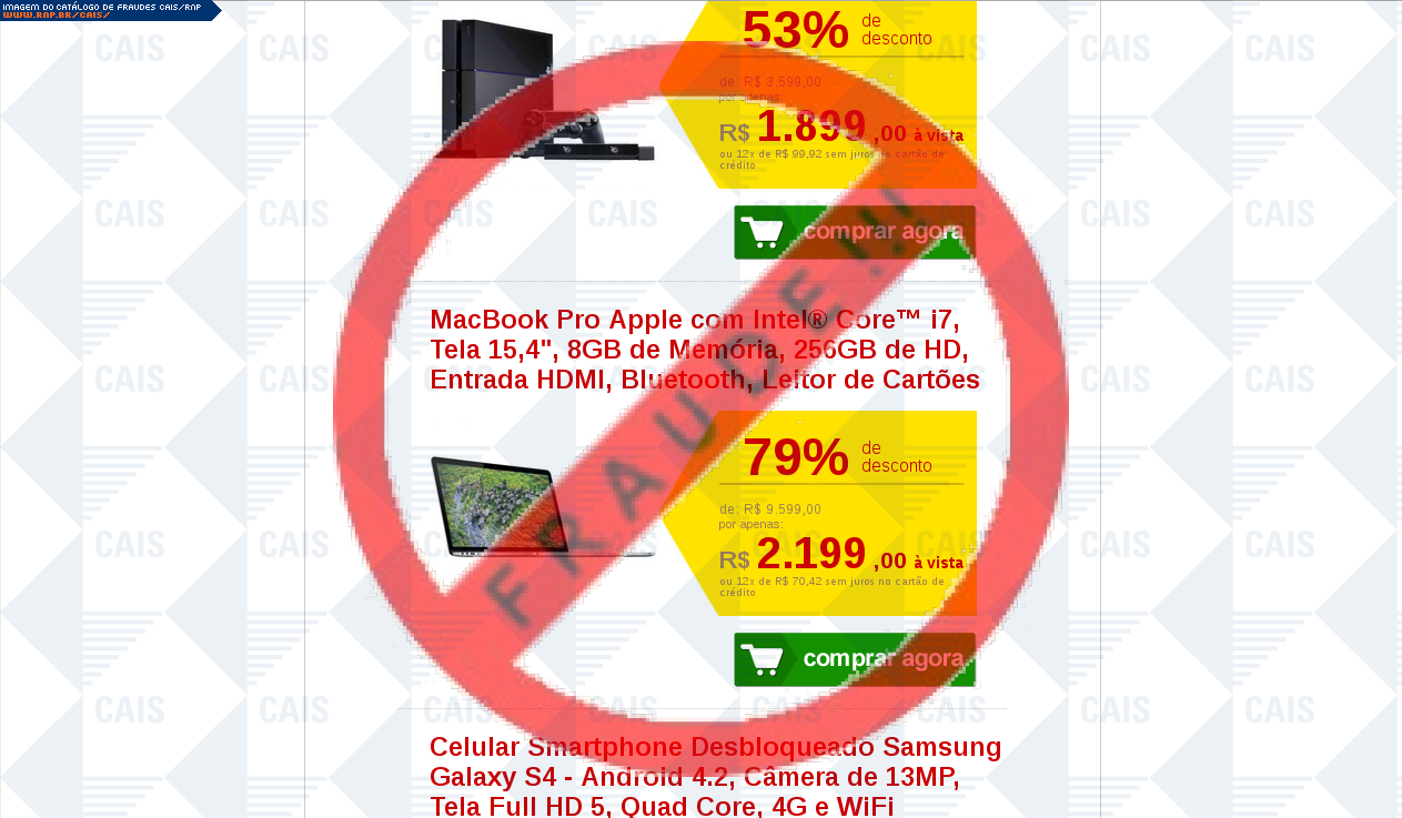 | comentário | O usuário recebe uma mensagem informando sobre promoções de produtos disponíveis para compra, no entanto a página é falsa criada para roubar as informações pessoais e os dados do cartão da vítima. | |