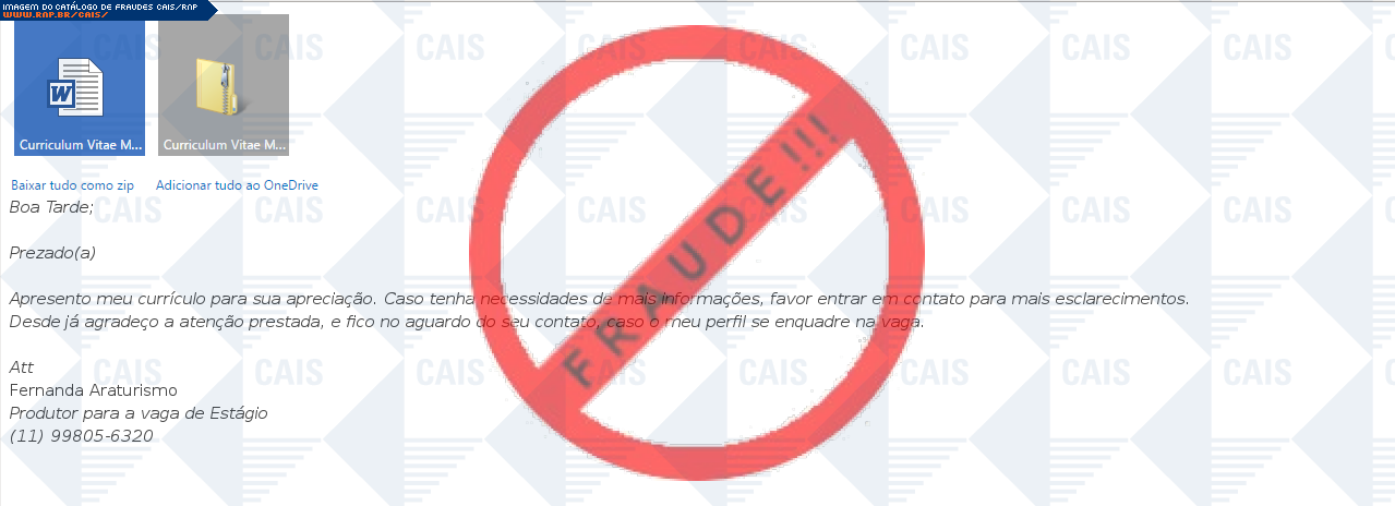 | arquivo malicioso | Curriculum Vitae Mariana Rodrigues Word.exe | |
