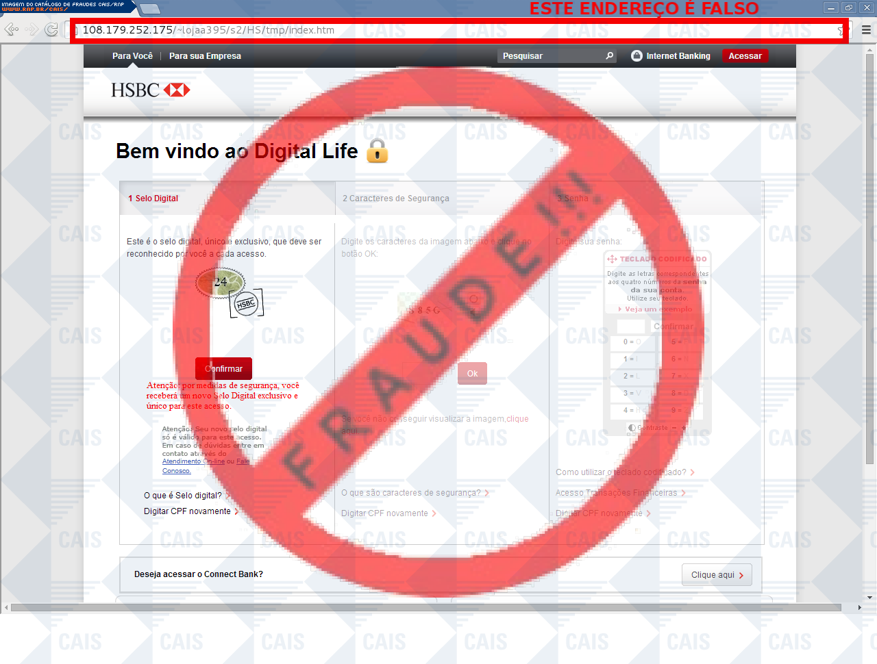 Esta página tem função informativa e educativa. Exibe uma coleção de imagens de phishing scam (fraudes eletrônicas) ou malware (código malicioso) veiculados por meio de spam (e-mail não-solicitado). Trata-se de conteúdo exemplificativo, não exaustivo, uma vez que não é possível contemplar todos os casos de fraudes existentes. Assim, caso você tenha conhecimento de um exemplar que não esteja aqui presente, isto não significa que não seja válido ou real. Inclusive incentivamos que você o envie para análise do CAIS para que, se for o caso, passe a integrar o nosso acervo.