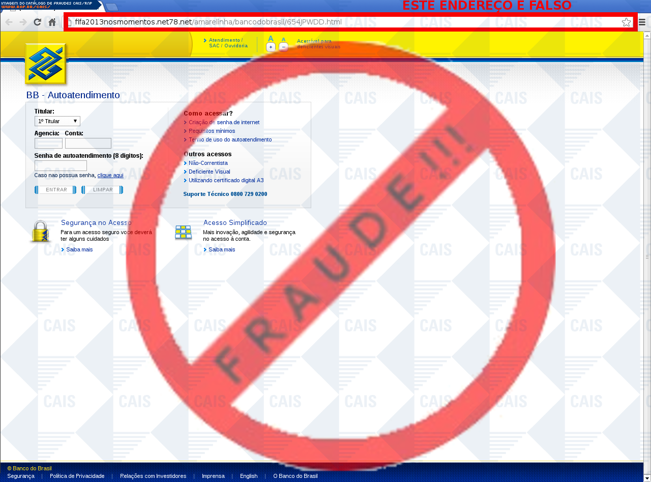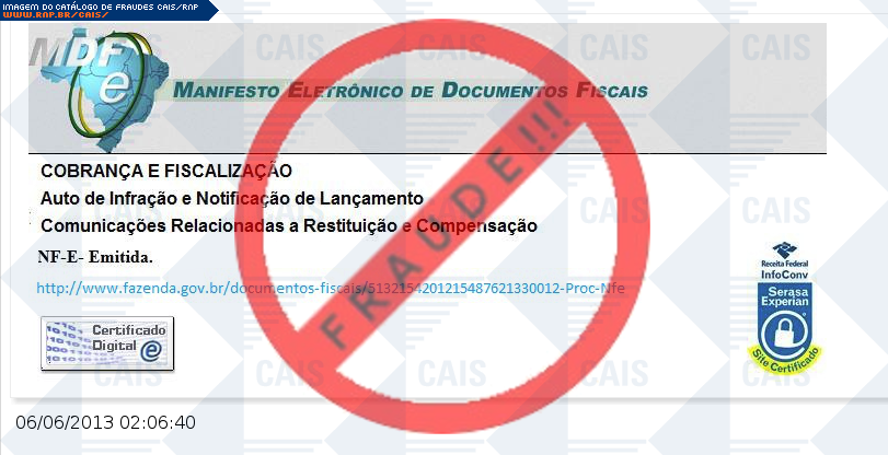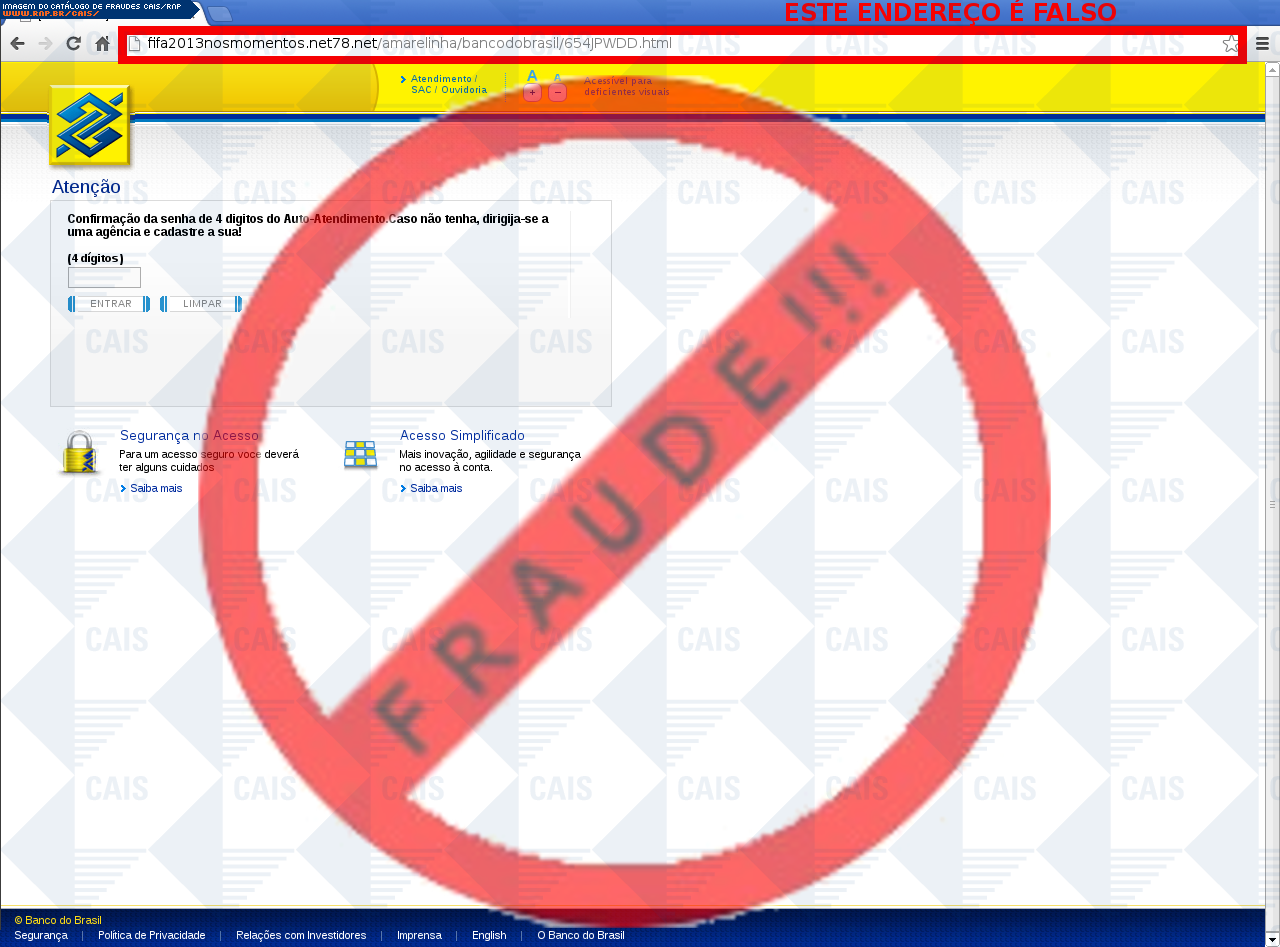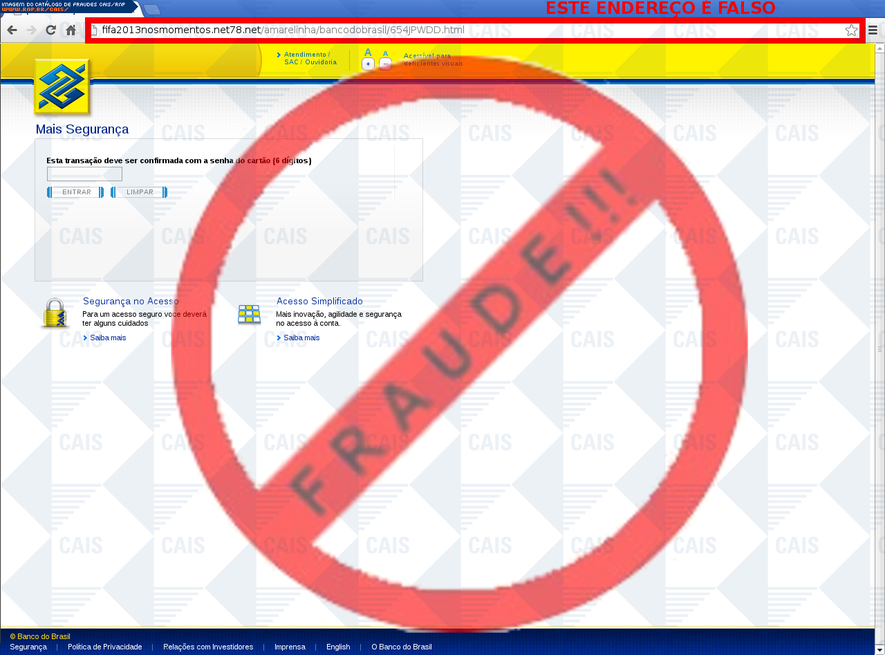 Esta página tem função informativa e educativa. Exibe uma coleção de imagens de phishing scam (fraudes eletrônicas) ou malware (código malicioso) veiculados por meio de spam (e-mail não-solicitado). Trata-se de conteúdo exemplificativo, não exaustivo, uma vez que não é possível contemplar todos os casos de fraudes existentes. Assim, caso você tenha conhecimento de um exemplar que não esteja aqui presente, isto não significa que não seja válido ou real. Inclusive incentivamos que você o envie para análise do CAIS para que, se for o caso, passe a integrar o nosso acervo.
