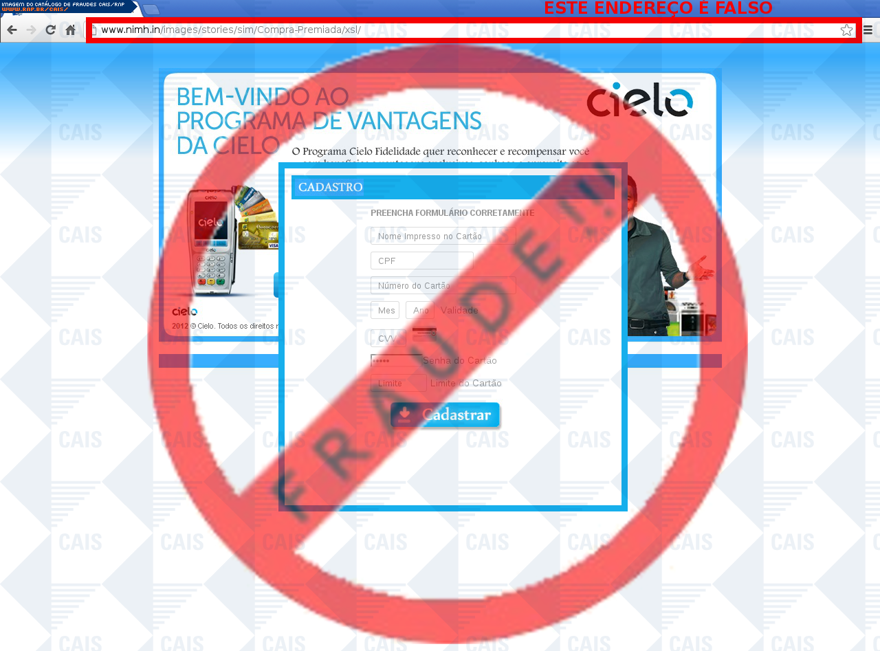 |   |  Fraudes identificadas e divulgadas pelo CAISA partir de 2008, todas as fraudes identificadas pelo CAIS estão sendo ordenadas de acordo com a data de distribuição e disponibilizadas para consulta, com o intuito de conscientizar a comunidade sobre os principais golpes que estão em circulação. Adicionalmente, o CAIS envia alertas de segurança através da lista CAIS Alerta quando uma fraude mostra-se particularmente perigosa aos usuários de computadores. Reporte fraudes: