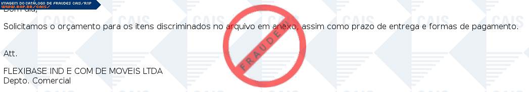 | comentário | A vítima recebe um email dizendo que há um orçamento para análise em anexo. Porém, o anexo leva ao download de um malware de nome Gen:Variant.Graftor.250106 que tenta infectar o computador da vítima. | |