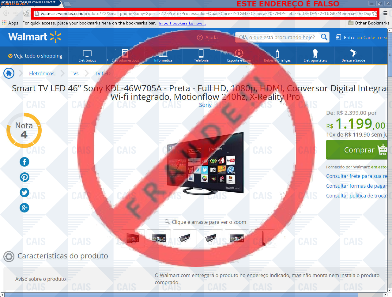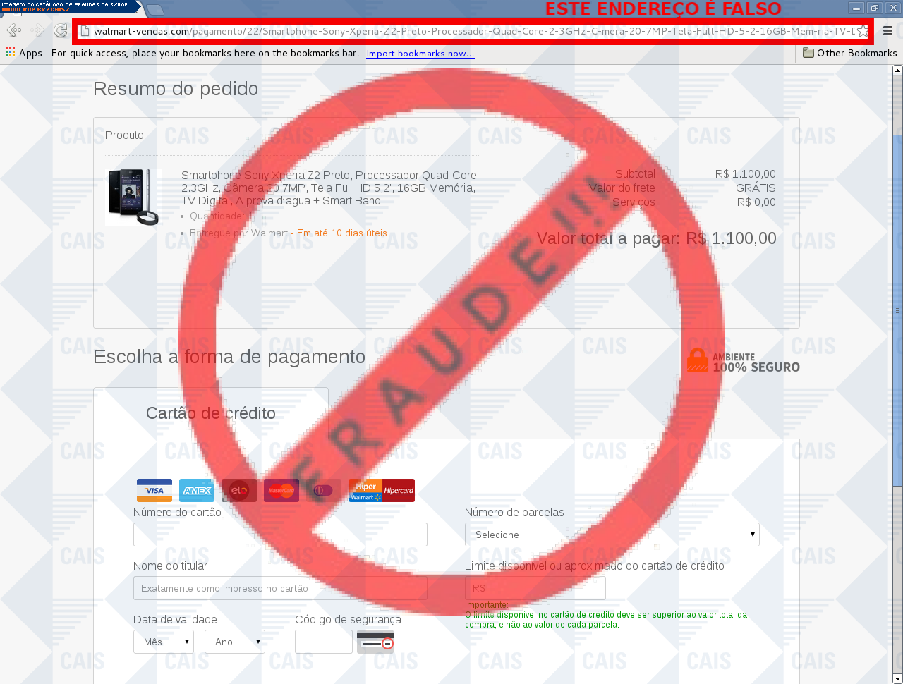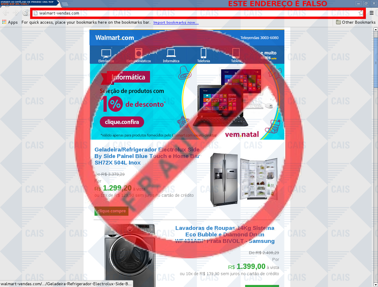 | comentário | A vítima recebe um e-mail informando sobre promoções no site de compra da Walmart disponibilizando link de vários produtos em desconto, no entanto a página é falsa destinada a roubar as informações pessoais e do cartão do usuário. | |