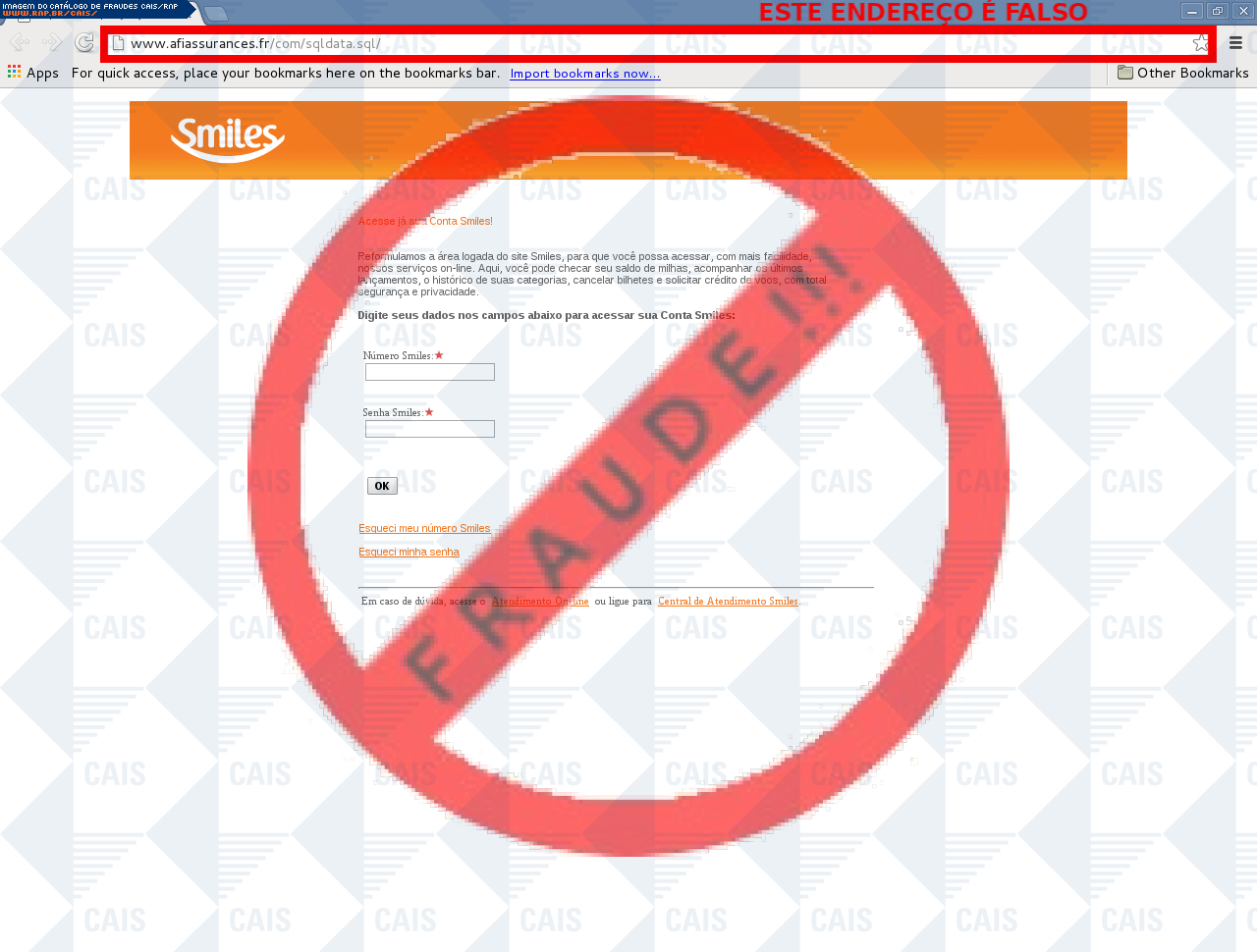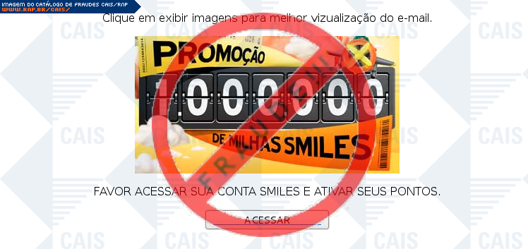 | comentário | A vítima recebe uma mensagem informando sobre a promoção de milhas Smiles da Gol, no entanto a página é falsa destinada a roubar as informações do usuário. | |
