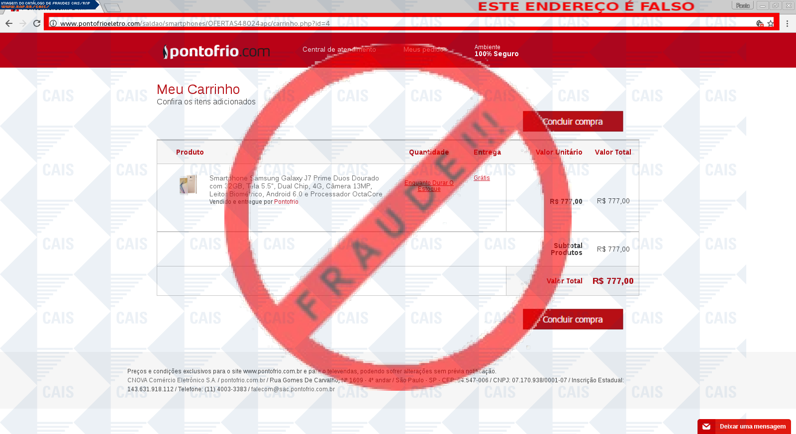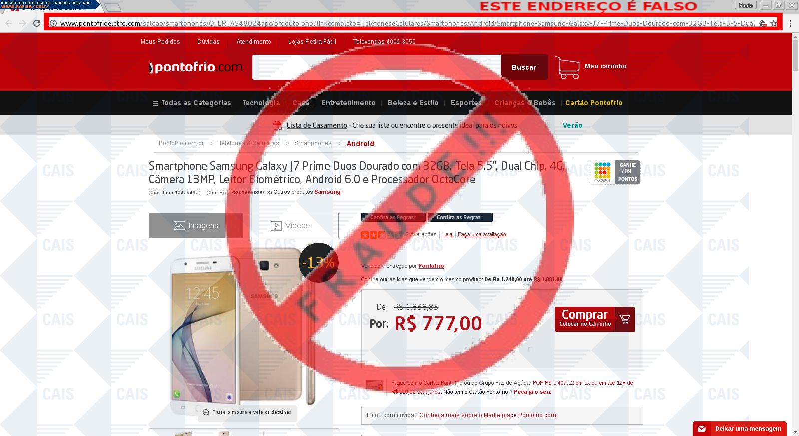 | tipo | FRAUDE - Ponto Frio | ID: 51846 |