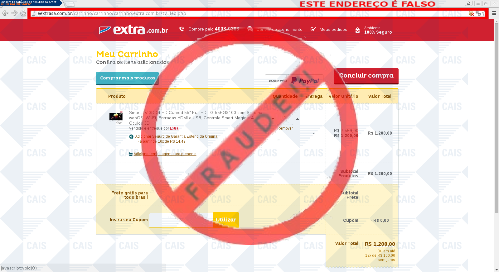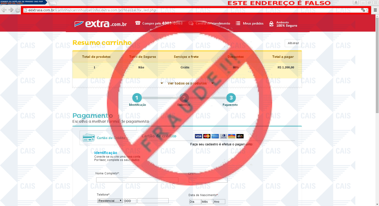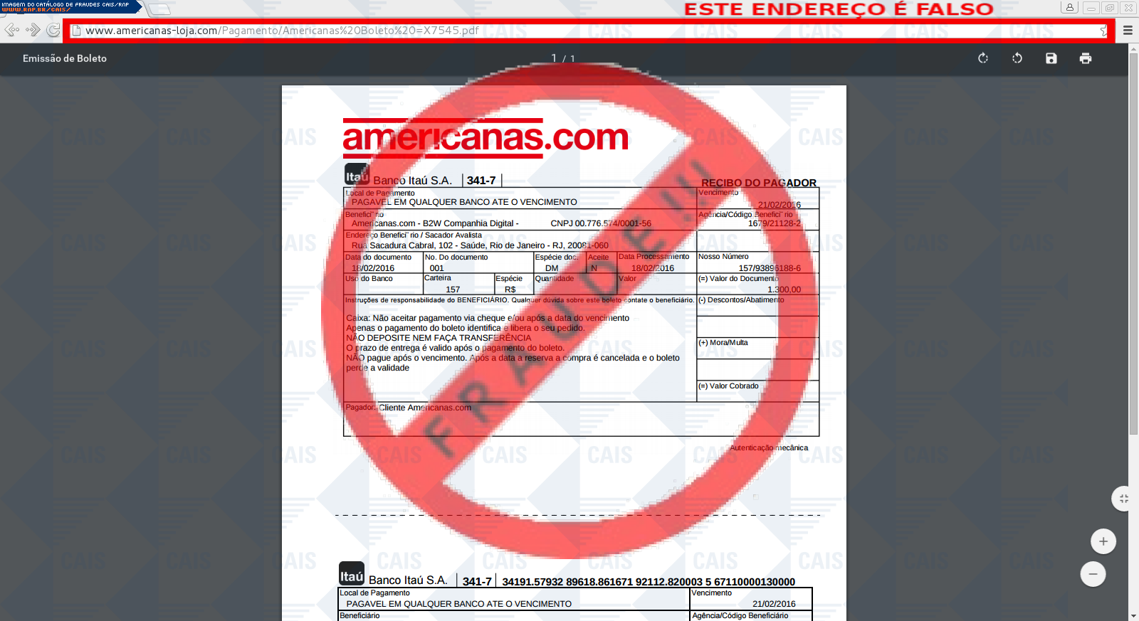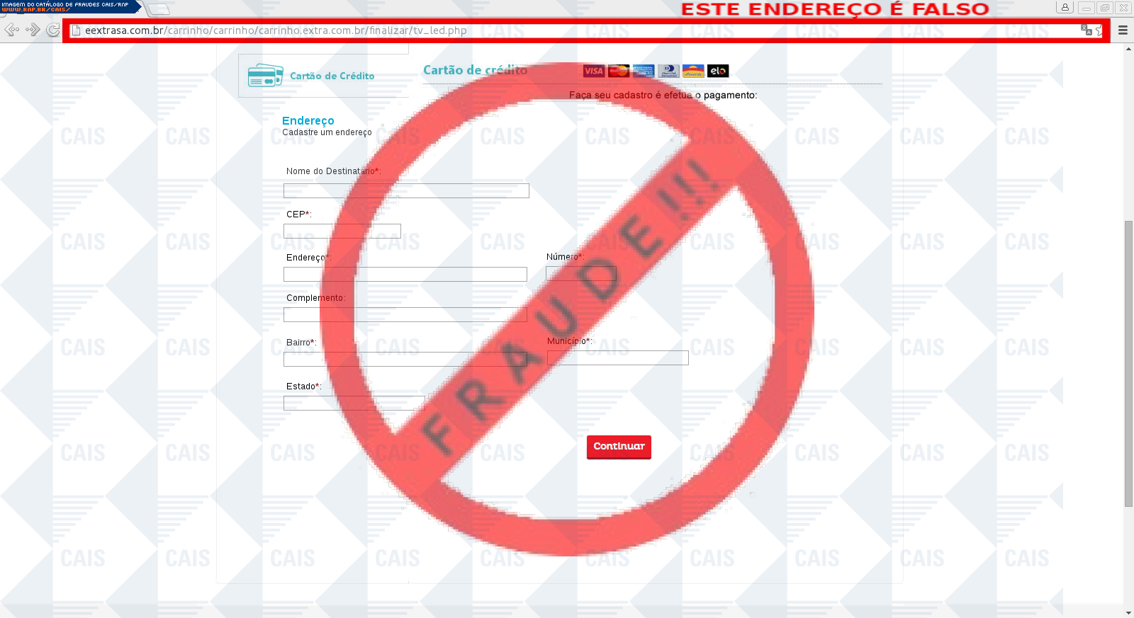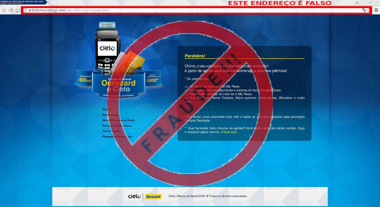 Esta página tem função informativa e educativa. Exibe uma coleção de imagens de phishing scam (fraudes eletrônicas) ou malware (código malicioso) veiculados por meio de spam (e-mail não-solicitado). Trata-se de conteúdo exemplificativo, não exaustivo, uma vez que não é possível contemplar todos os casos de fraudes existentes. Assim, caso você tenha conhecimento de um exemplar que não esteja aqui presente, isto não significa que não seja válido ou real. Inclusive incentivamos que você o envie para análise do CAIS para que, se for o caso, passe a integrar o nosso acervo.