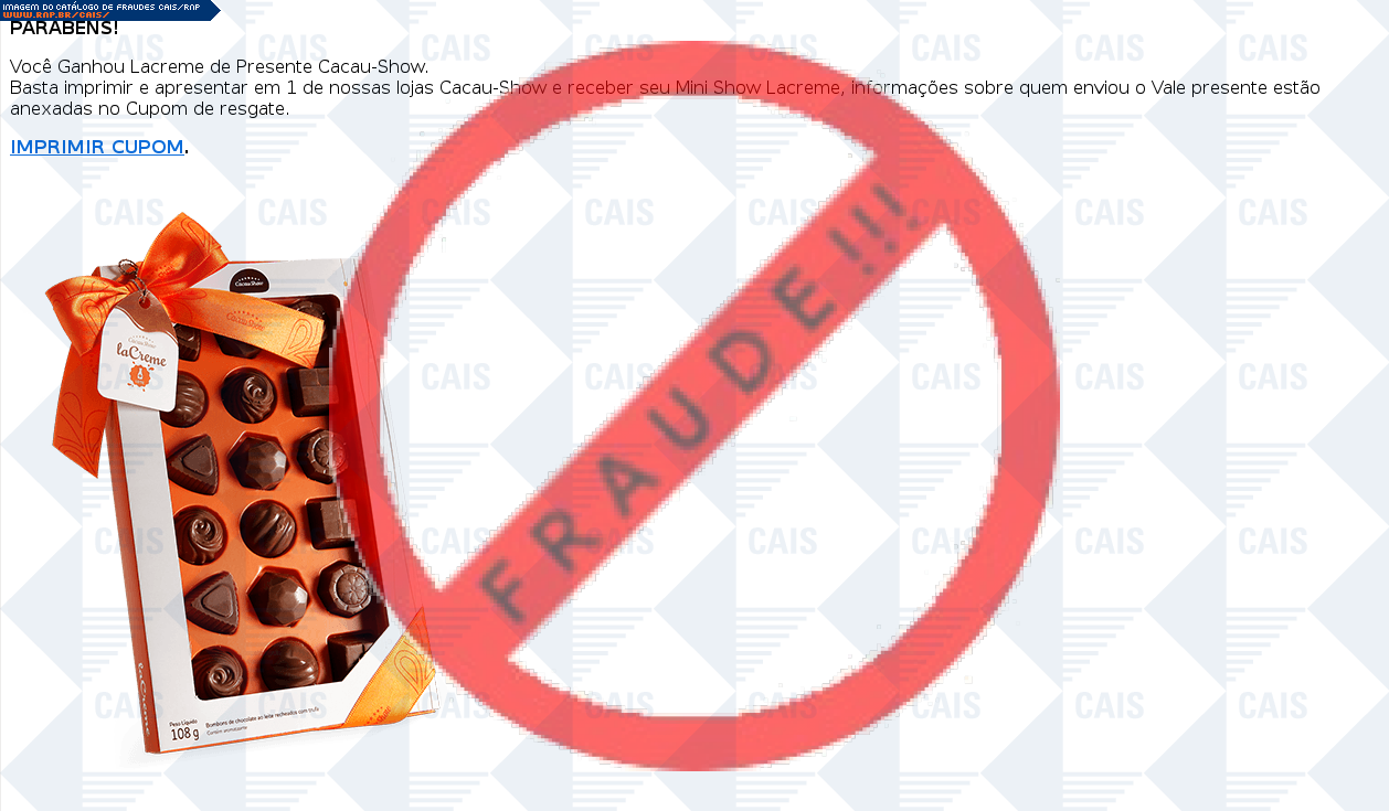 | assunto | Cacau Show, um presente para você. (53190) | |