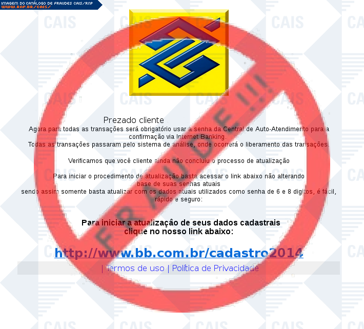 | tipo | FRAUDE - Banco do Brasil | ID: 32811 |