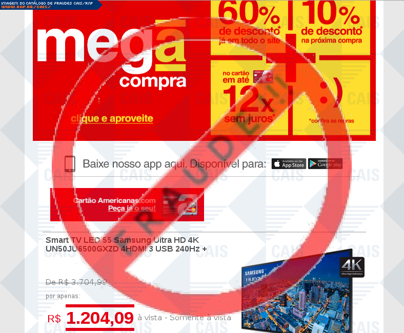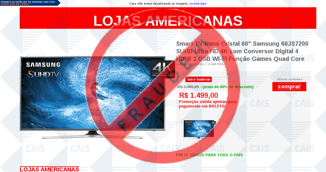 | tipo | FRAUDE - Lojas Americanas Oferta Tv | ID: 51416 |