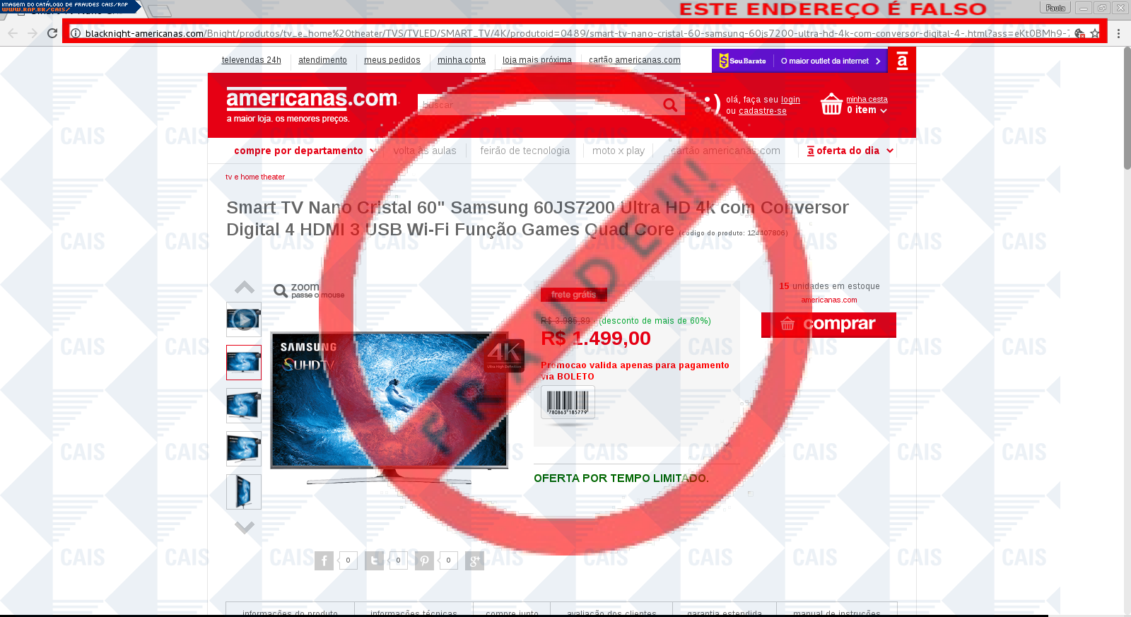 | assunto | Americanas.com - Smart TV Nano Cristal 60" Samsung 60JS7200 SUHD Ultra HD 4K com Conversor Digital 4 HDMI 3 USB Wi-Fi Games Quad Core -20/12/2016 05:13:30 | |