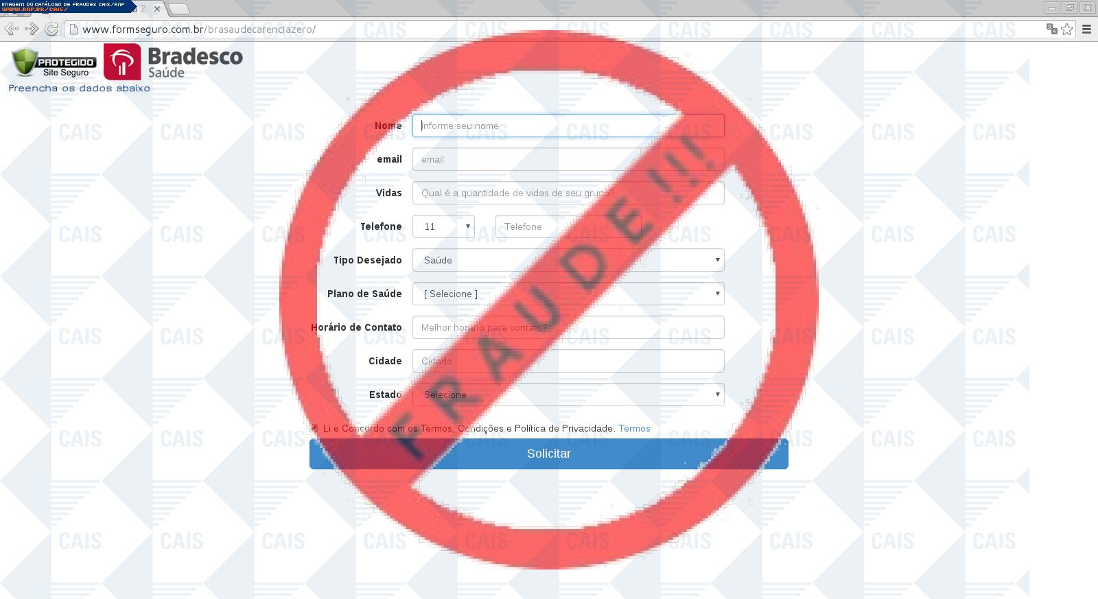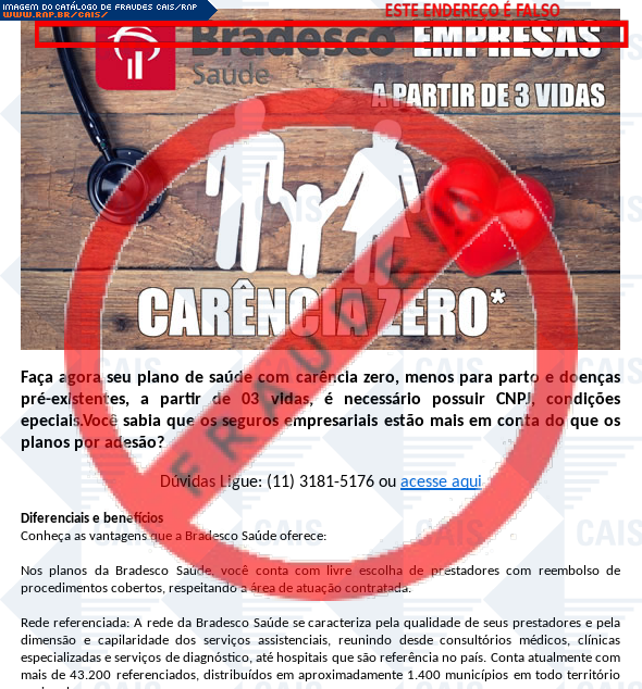 | comentário | A vítima recebe uma mensagem informando sobre oferta do plano de saúde do Bradesco Saúde, sendo necessário realizar cadastro através do formulário no link disponibilizado, no entanto a página é falsa destinada a roubar as informações do usuário. | |