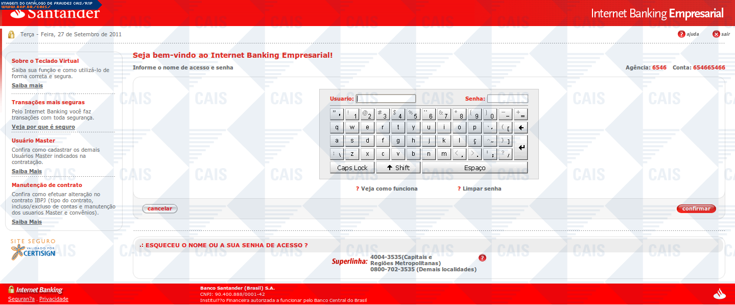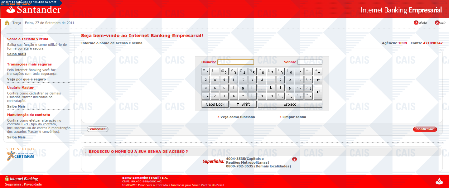 | assunto | Santander Internet Banking Empresarial: Novo padrão de segurança | |