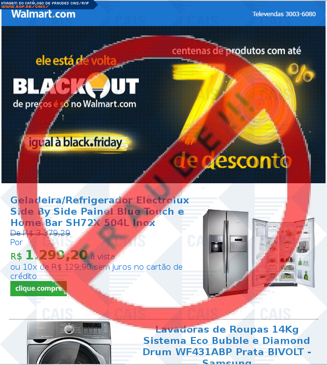 | tipo | FRAUDE - Walmart Promoções | ID: 33666 |