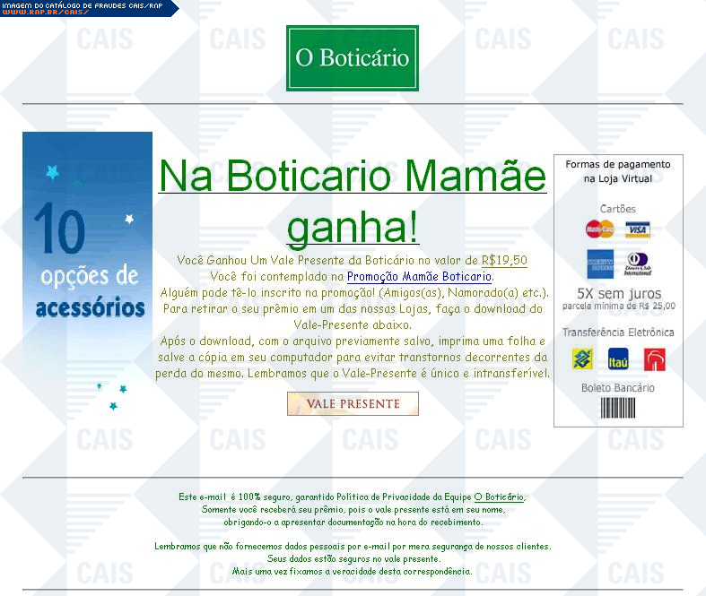 | tipo | Fraude Vale Presente Boticario | ID: 196 |
