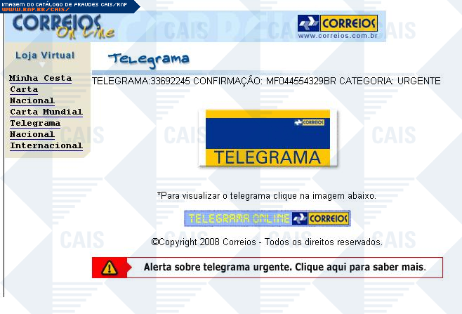 | tipo | Fraude Telegrama Correios | ID: 190 |