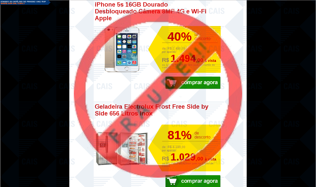 | comentário | O usuário recebe uma mensagem informando sobre promoções de produtos disponíveis para compra, no entanto a página é falsa criada para roubar as informações pessoais e os dados do cartão da vítima. | |