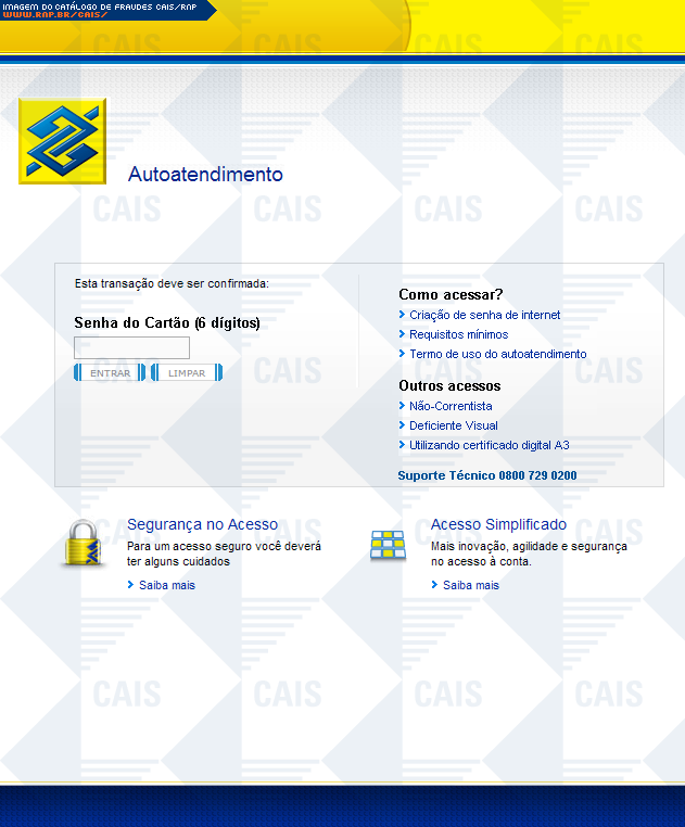 | tipo | Módulo de segurança Banco do Brasil | ID: 11156 |