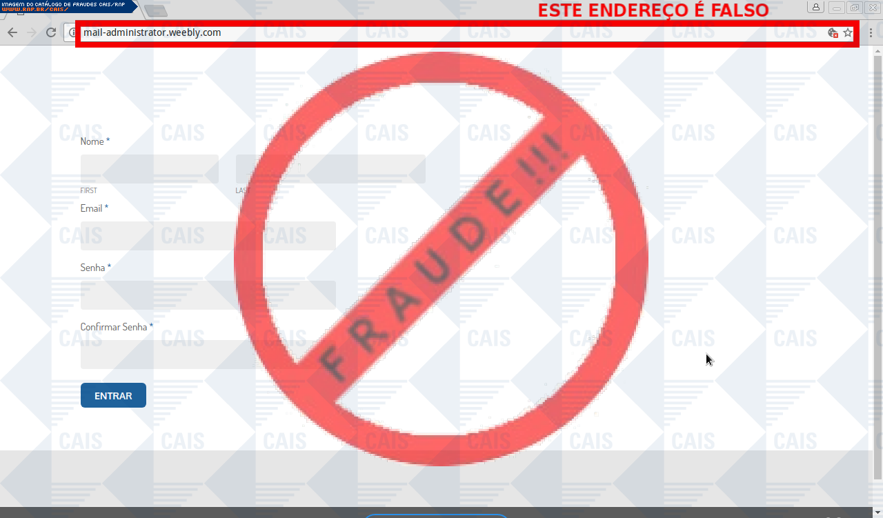 Esta página tem função informativa e educativa. Exibe uma coleção de imagens de phishing scam (fraudes eletrônicas) ou malware (código malicioso) veiculados por meio de spam (e-mail não-solicitado). Trata-se de conteúdo exemplificativo, não exaustivo, uma vez que não é possível contemplar todos os casos de fraudes existentes. Assim, caso você tenha conhecimento de um exemplar que não esteja aqui presente, isto não significa que não seja válido ou real. Inclusive incentivamos que você o envie para análise do CAIS para que, se for o caso, passe a integrar o nosso acervo.