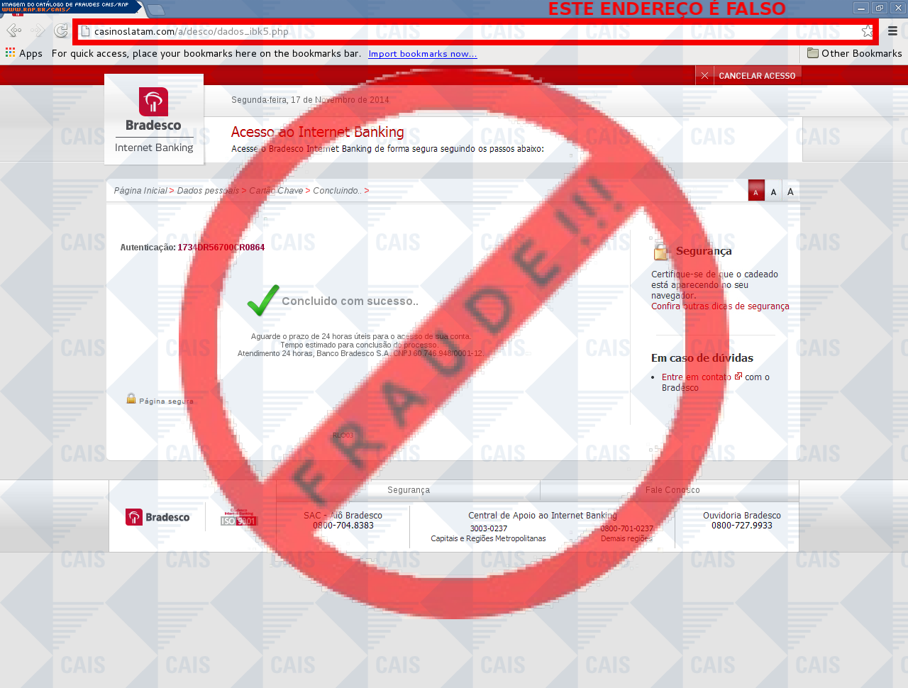 | tipo | FRAUDE - Bradesco Chave de Segurança | ID: 34541 |