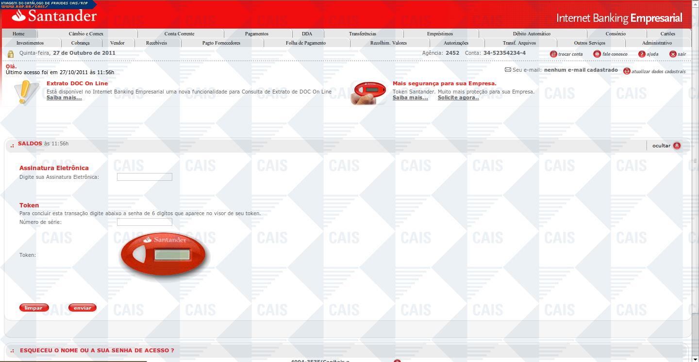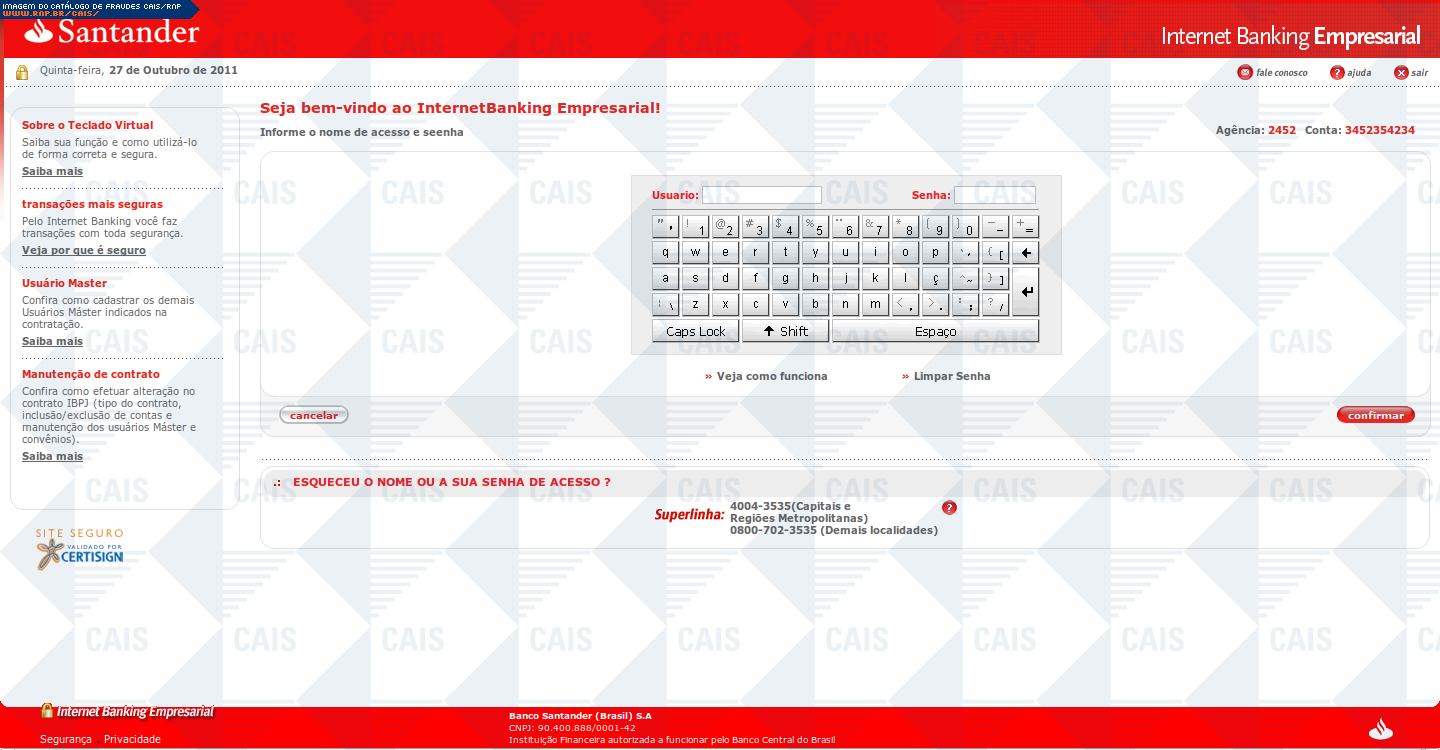 | tipo | Cartão de segurança Santander | ID: 13461 |