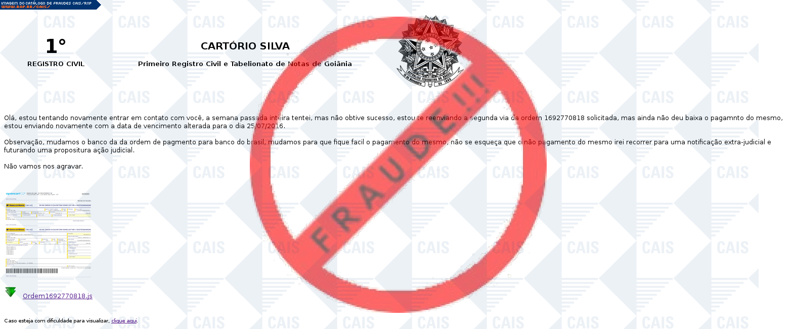 | assunto | Assunto urgente, ordem 1692770818 sendo enviada para juridico! | |