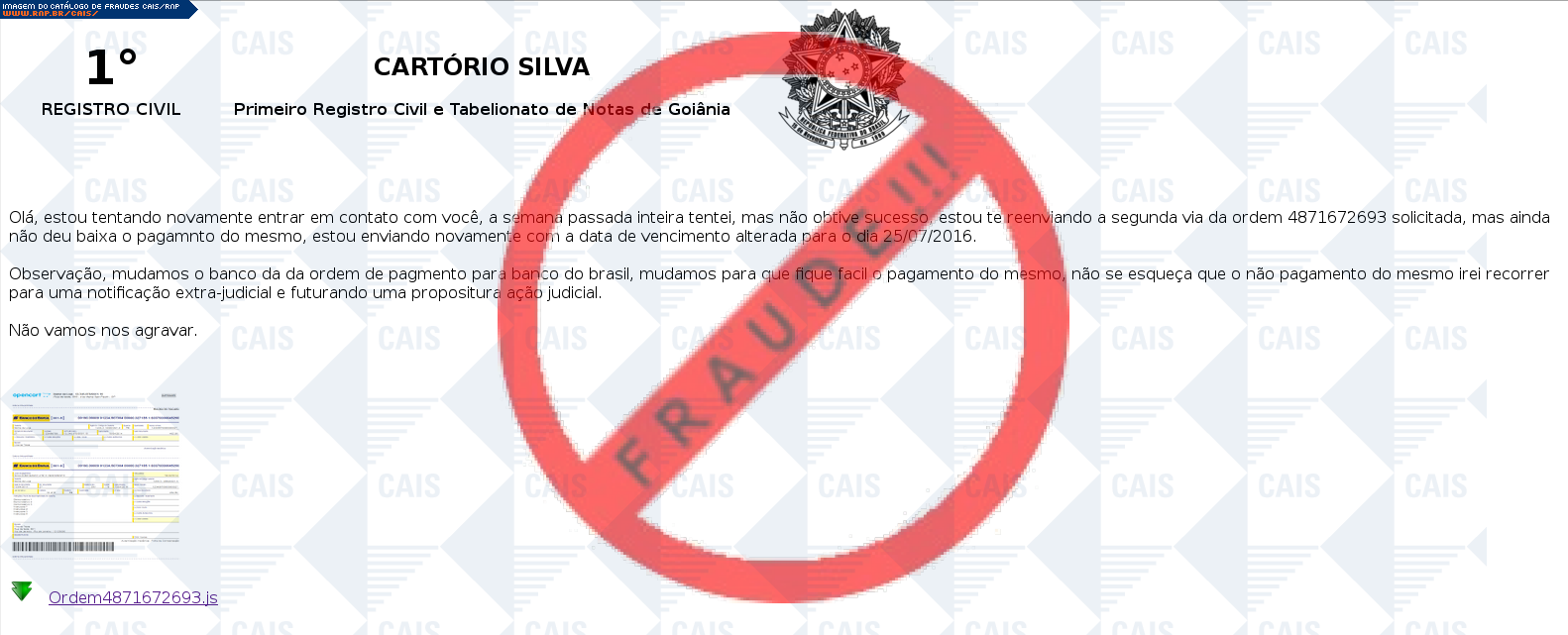 | assunto | Assunto urgente, ordem 4871672693 sendo enviada para juridico! | |