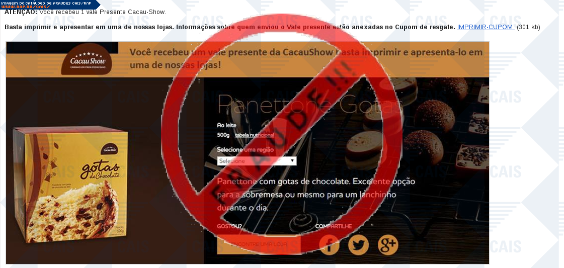 | tipo | FRAUDE - Cacau Show vale presente | ID: 37536 |