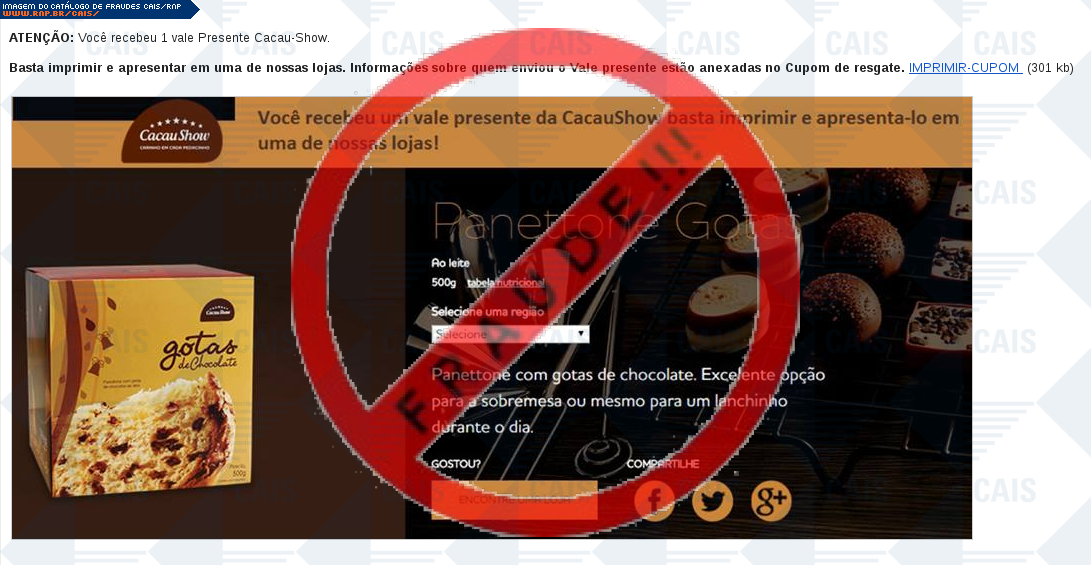 | tipo | FRAUDE - Cacau Show vale presente | ID: 37521 |