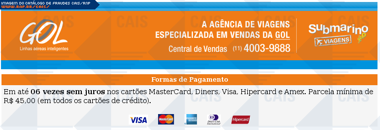 Esta página tem função informativa e educativa. Exibe uma coleção de imagens de phishing scam (fraudes eletrônicas) ou malware (código malicioso) veiculados por meio de spam (e-mail não-solicitado). Trata-se de conteúdo exemplificativo, não exaustivo, uma vez que não é possível contemplar todos os casos de fraudes existentes. Assim, caso você tenha conhecimento de um exemplar que não esteja aqui presente, isto não significa que não seja válido ou real. Inclusive incentivamos que você o envie para análise do CAIS para que, se for o caso, passe a integrar o nosso acervo.