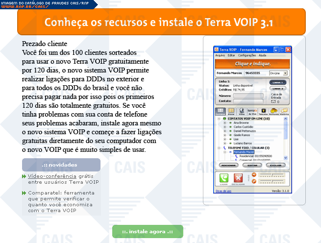 | arquivo malicioso | Voip_Terra_3.1.exe | |