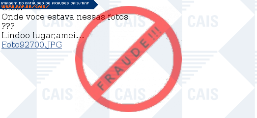 | comentário | A vítima recebe uma mensagem, contendo supostas fotos da vítima, mas ao clicar no link para visualizá-las, inicia-se o download de um malware. | |