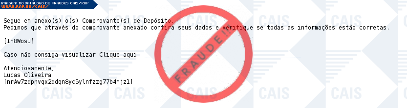 | comentário | A vítima recebe uma mensagem, contendo em anexo um comprovante de depósito em conta, mas na verdade trata-se de um arquivo malicioso, identificado como Gen:Variant.Symmi.37371. | |