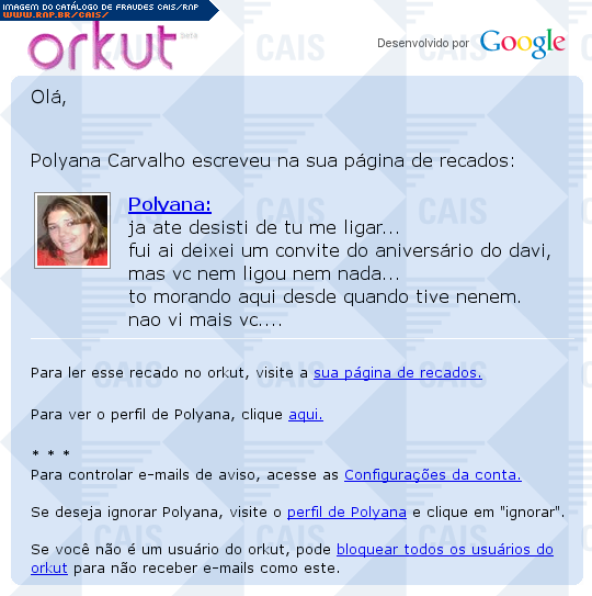 | tipo | Fraude Recado do Orkut | ID: 463 |