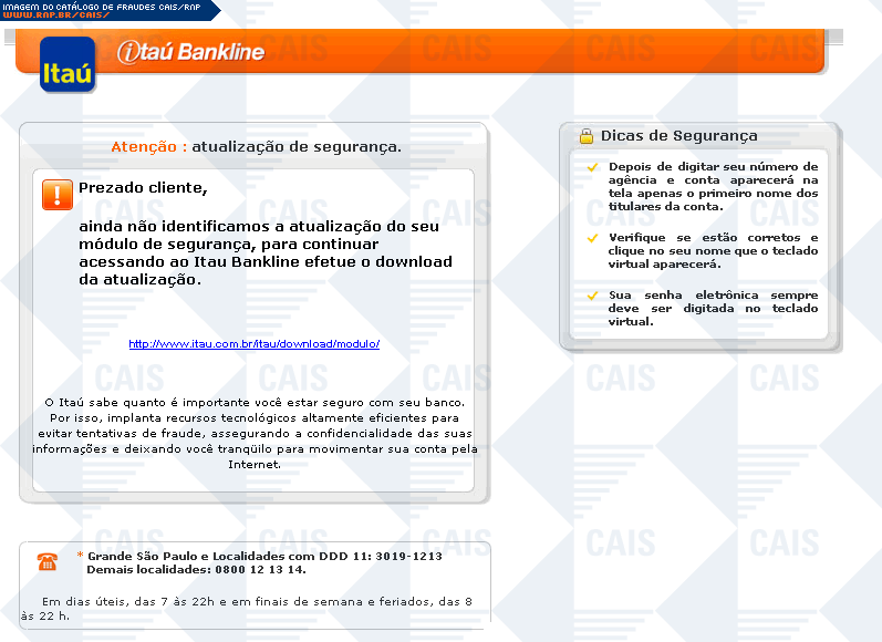 | tipo | Fraude Atualização Itaú | ID: 465 |