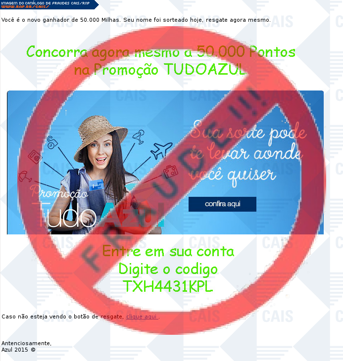| tipo | FRAUDE - Voe Azul prêmios | ID: 45146 |