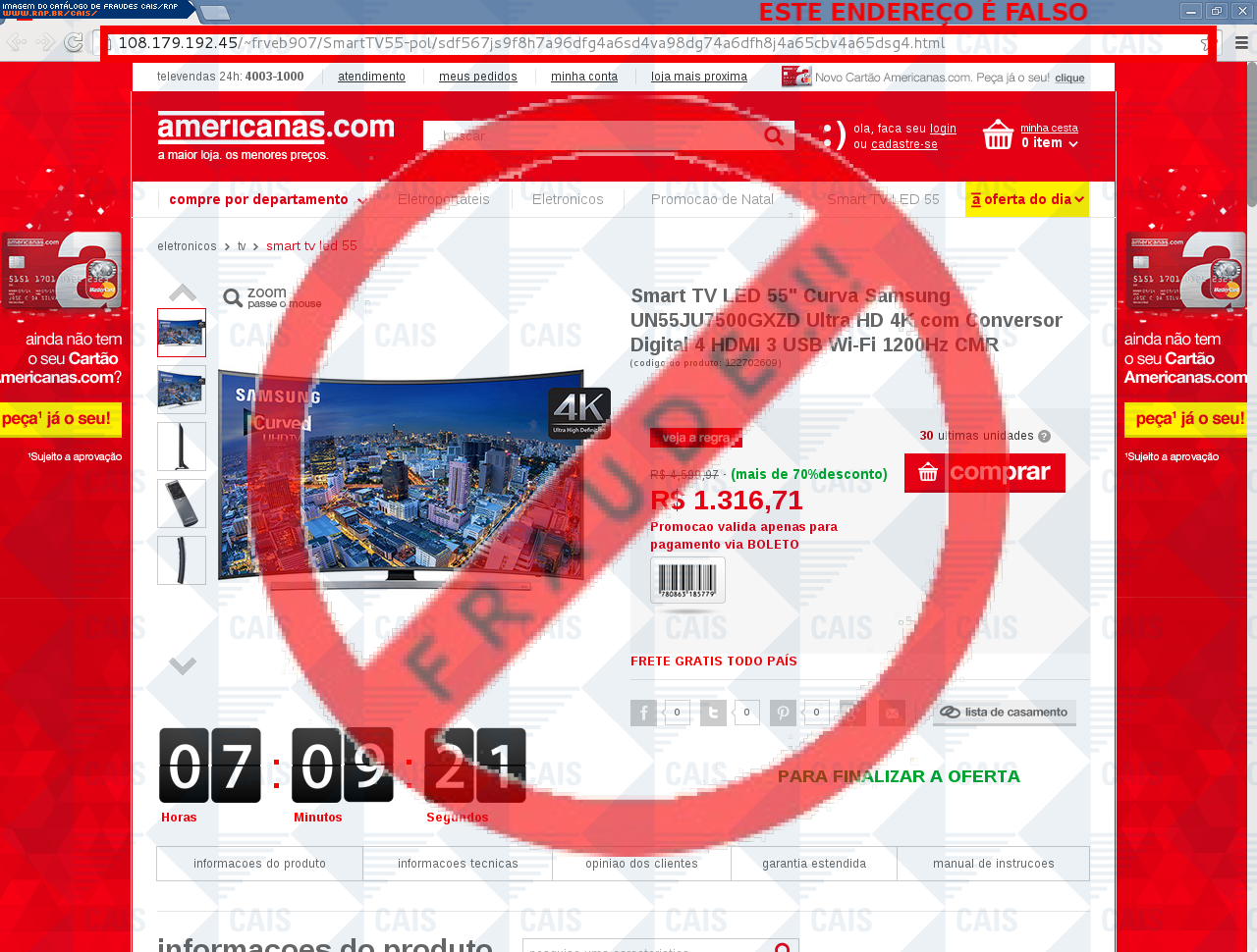| tipo | FRAUDE - Lojas Americanas TV promoção | ID: 45111 |
