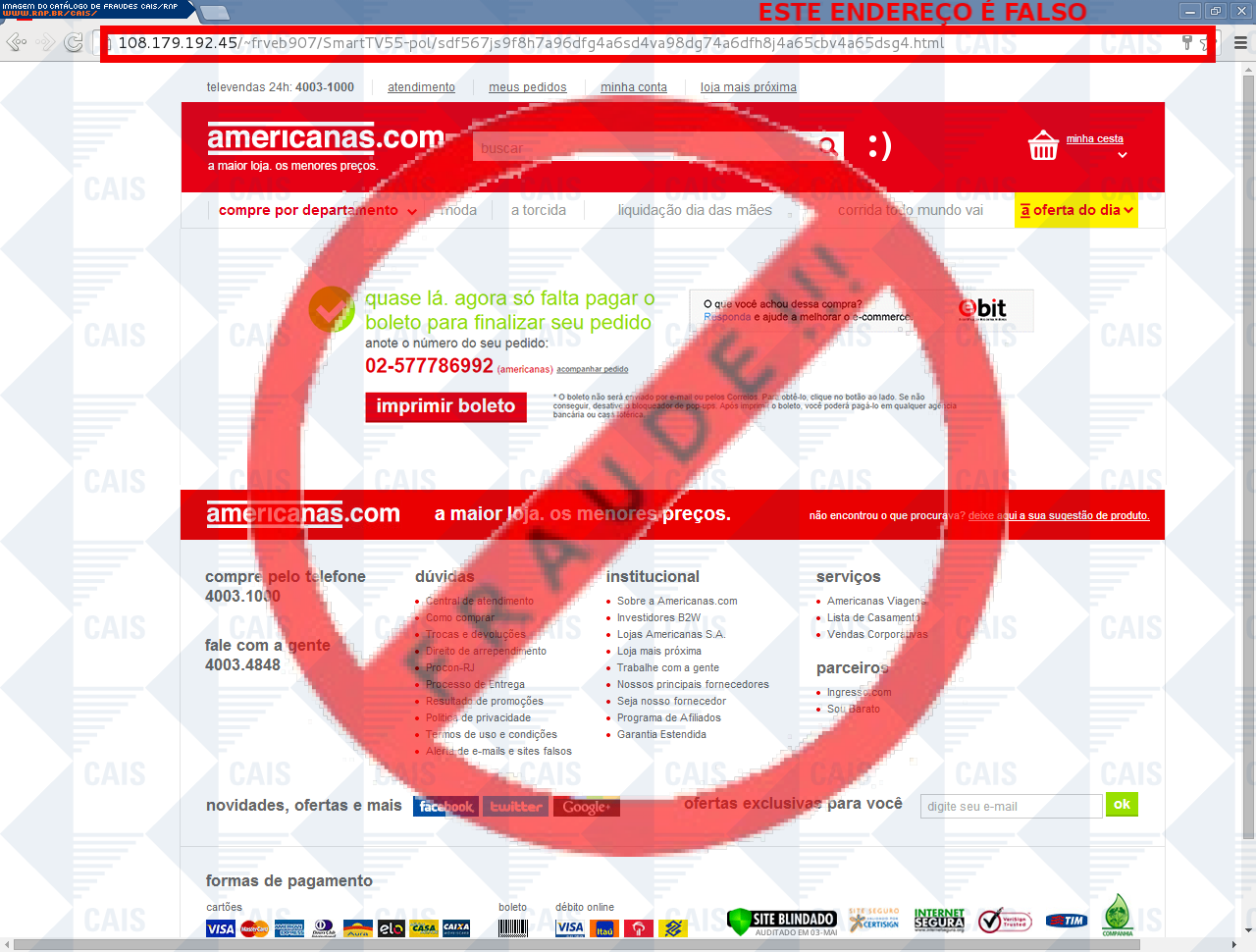 | tipo | FRAUDE - Lojas Americanas TV promoção | ID: 45186 |