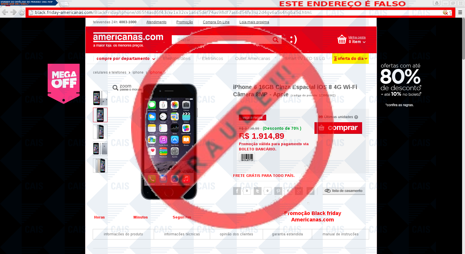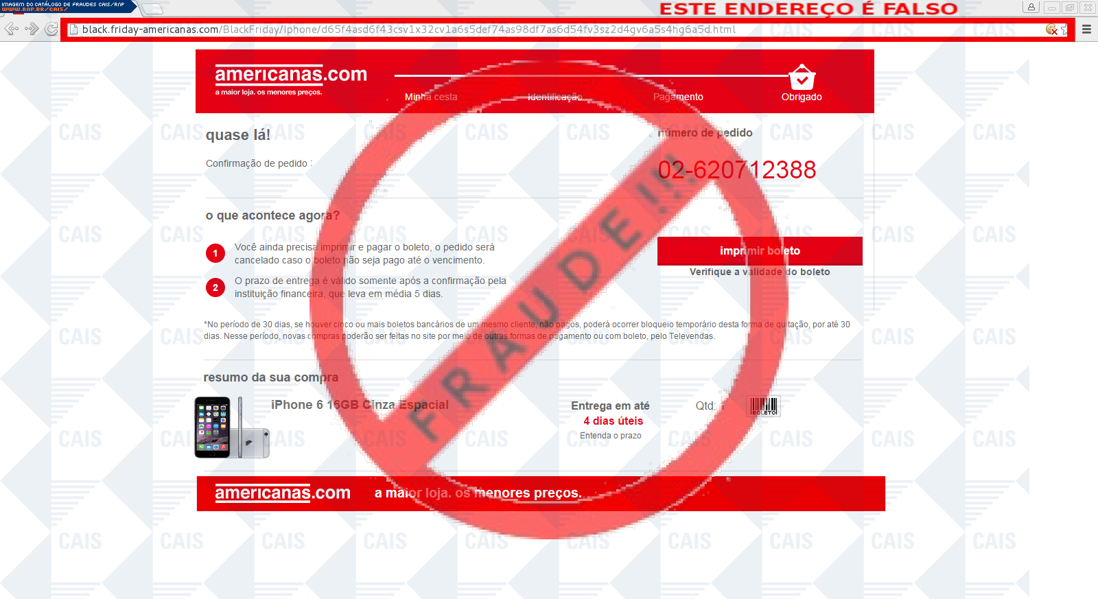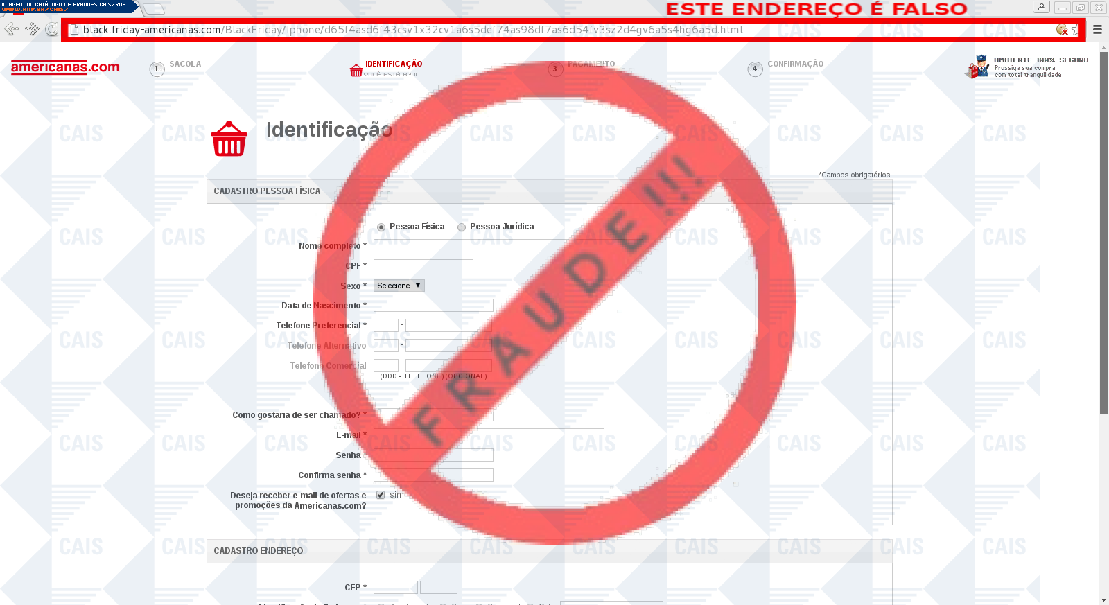 | comentário | A vítima recebe um e-mail informando sobre promoção no site de compra da Loja Americanas disponibilizando link de produtos em desconto, no entanto a página é falsa destinada a roubar as informações pessoais e do cartão de crédito/débito do usuário. | |