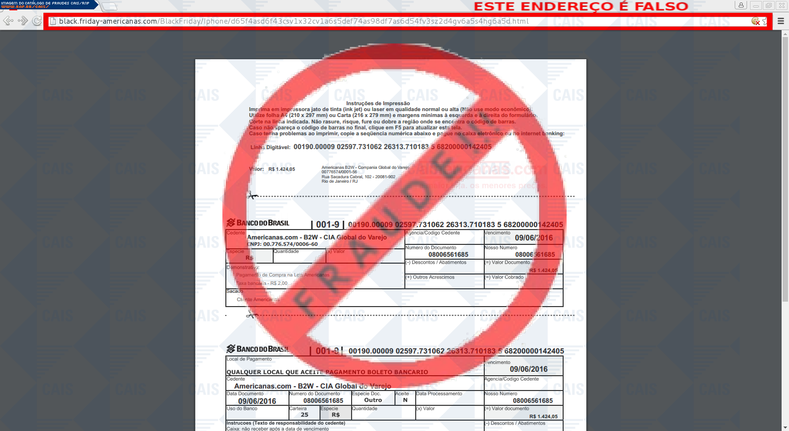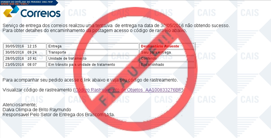 Esta página tem função informativa e educativa. Exibe uma coleção de imagens de phishing scam (fraudes eletrônicas) ou malware (código malicioso) veiculados por meio de spam (e-mail não-solicitado). Trata-se de conteúdo exemplificativo, não exaustivo, uma vez que não é possível contemplar todos os casos de fraudes existentes. Assim, caso você tenha conhecimento de um exemplar que não esteja aqui presente, isto não significa que não seja válido ou real. Inclusive incentivamos que você o envie para análise do CAIS para que, se for o caso, passe a integrar o nosso acervo.