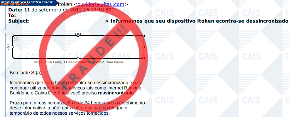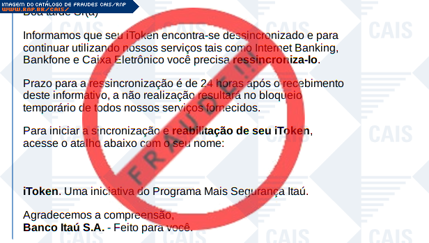 | assunto | Cliente CPF: Numero - Informamos que seu dispositivo Itoken econtra-se dessincronizado | |
