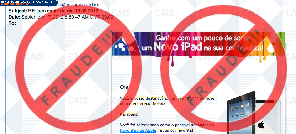 | tipo | FRAUDE - Sorteado para ganhar um Novo Ipad | ID: 18911 |