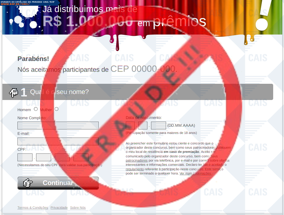 Com a disponibilização pública deste serviço, não é intenção do Centro de Atendimento a Incidentes de Segurança (CAIS) da Rede Nacional de Ensino e Pesquisa (RNP) violar direitos autorais sobre marcas registradas ou logotipos de empresas que porventura constem das amostras. O objetivo é tão somente alertar os usuários sobre as espécies de golpes que se utilizam de tais propriedades intelectuais ou industriais de forma criminosa.