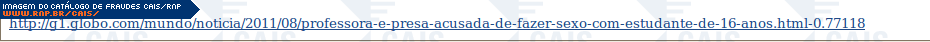 | comentário | A fraude explora a notícia sobre uma professora acusada de fazer sexo com um estudante. O link para a notícia leva a um arquivo malicioso que foi identificado como Trojan-Banker.BAT.Qhost.ak (Kaspersky). | |