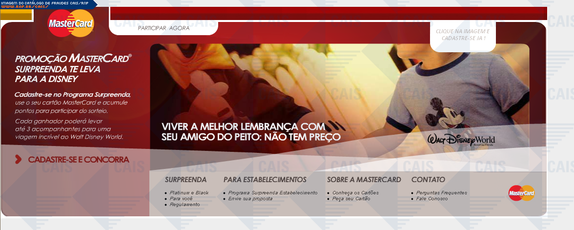 | comentário | A fraude contém um link para que a vítima se cadastre em uma promoção para concorrer a viagens para a Disney. O conteúdo malicioso não estava disponível no momento da análise. | |