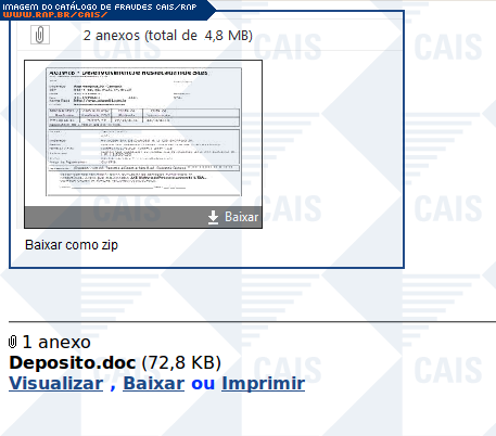| comentário | A fraude contém um link para um suposto comprovante de depósito. O link leva ao arquivo malicioso que foi identificado como Backdoor.Win32.Gbod (Ikarus). | |