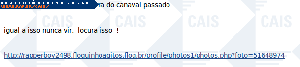 | comentário | Link para visualização de supostas fotos de carnaval provavelmente levaria ao download de um arquivo malicioso. Porém, tal arquivo não estava disponível no momento da análise. | |