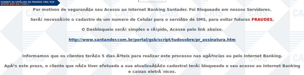 | assunto | Santander informa.: Cadastro obrigatorio de SMS | |